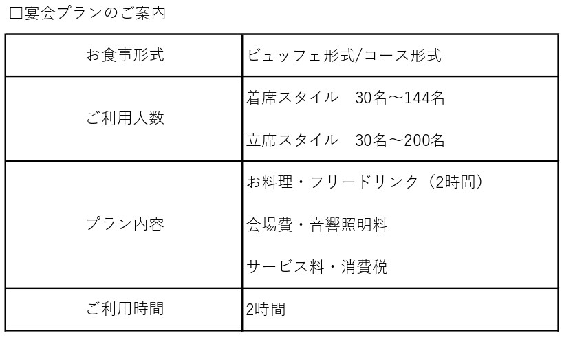 2025.11.01(土) 忘年会&新年会プラン2025-2026受付中 ガーデン付きの披露宴会場を、 親しい仲間とまるごと貸切。 笑顔が集まる、特別な忘新年会を ※30名からご予約にて承ります ※料金はサービス料・消費税込となります ※ご予算等、ご要望に応じて対応致しますのでお気軽にご相談下さい ※仕入状況等によりメニューが変更となる場合がございます ※チラシの写真等はイメージです ご相談はお気軽にお問合せ下さい 新着情報一覧
