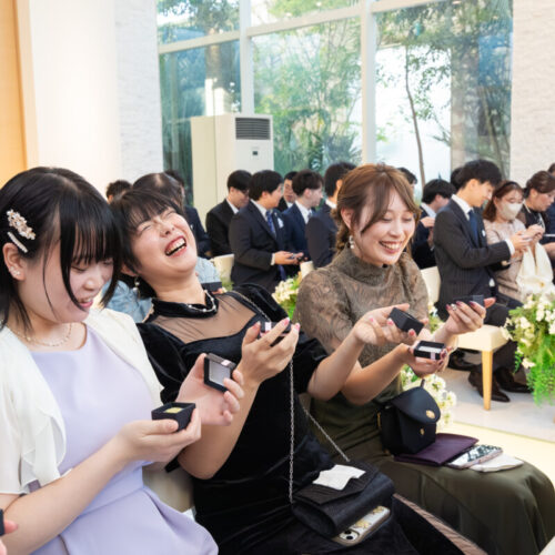 挙式前には私たちの結婚指輪を忍ばせたリングBOXを1人1個受け取ってもらい、