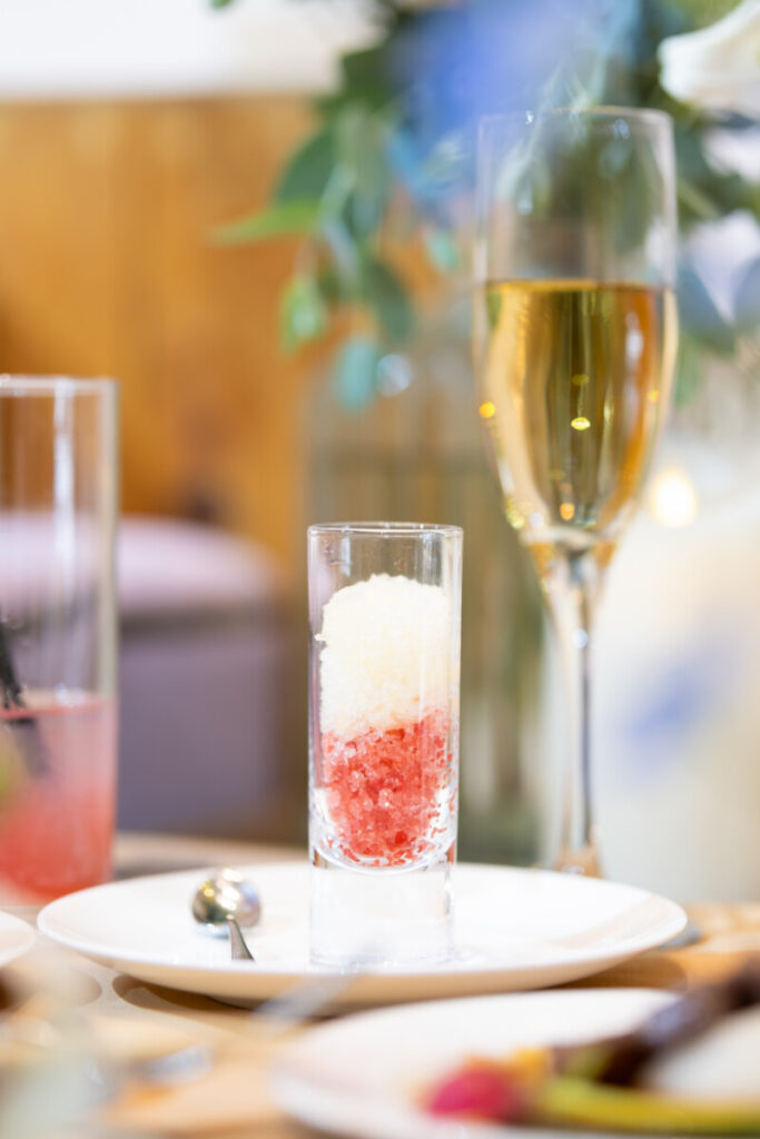 - 打ち合わせの時から愛犬中心の結婚式だね、とお話しする中で、グラニテの色合いや味を愛犬のイメージに合わせて作っていただきました。ここまでこだわっていただけたのが嬉しく、個人的には大満足の1品でした。